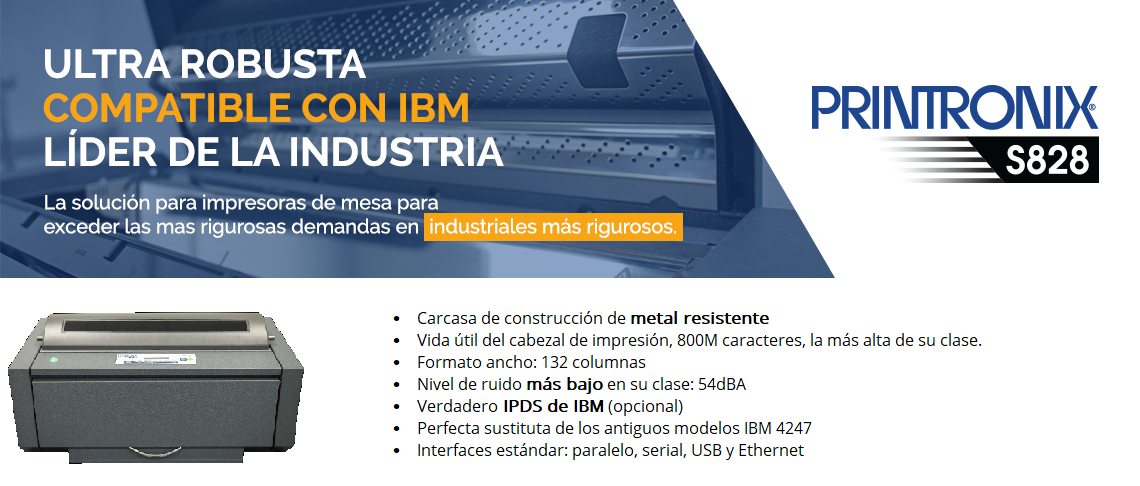 En entornos IBM, las impresoras S828 y S809 de Printronix ofrecen emulación IPDS genuina, heredada de los modelos IBM 4247. Esto garantiza una compatibilidad y funcionalidad absolutas.